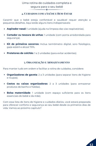 ✅ Organizar um espaço funcional e acolhedor: Dicas práticas para montar um cantinho seguro, confortável e organizado para o seu bebê, facilitando o dia a dia.